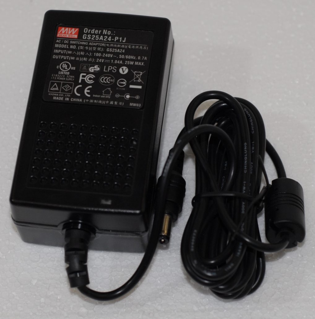 AC-DC Desktop adaptor; Output 24Vdc at 1.04A; Input connector IEC320-C14; GS25A24-P1J is succeeded by GST25A24-P1J.